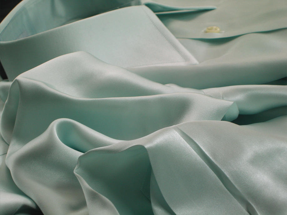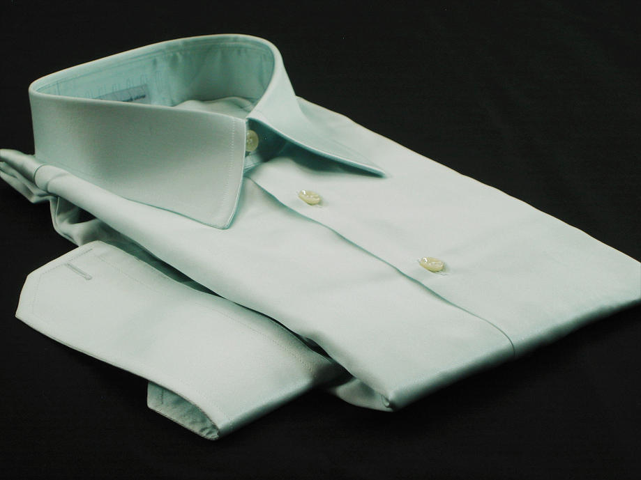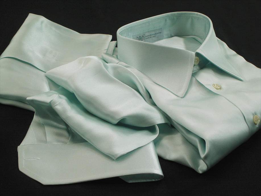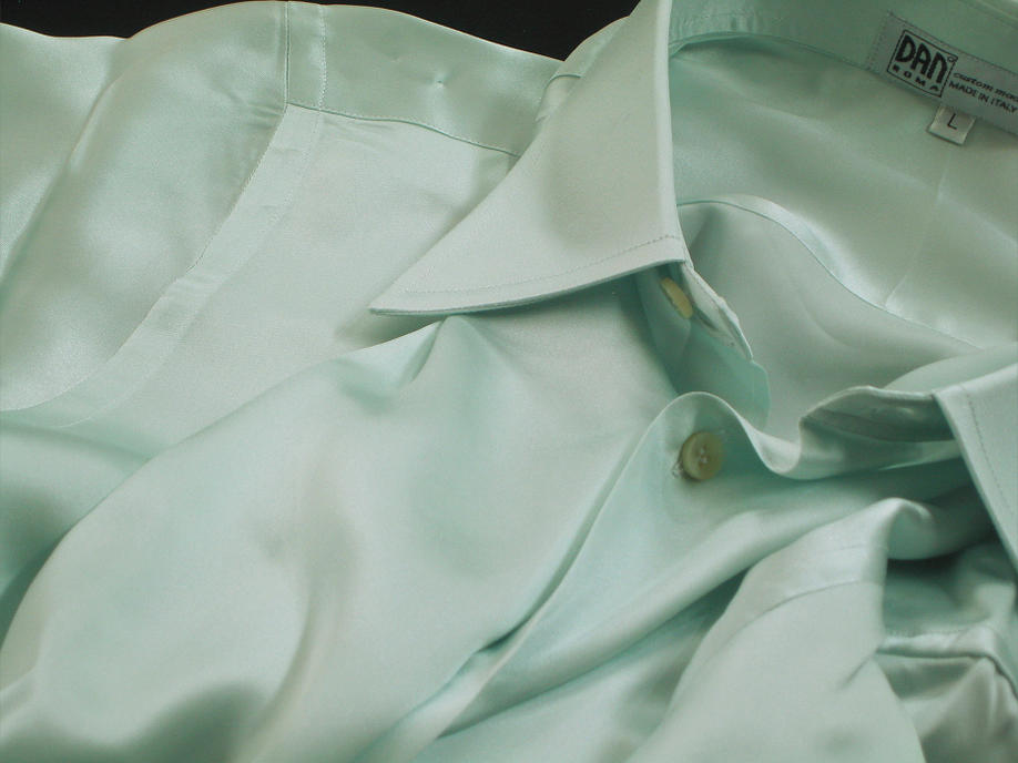 ★シルクサテンシャツ真珠色のアクアグリーンです。★一度は着てみたいものです・・・・・・・❤